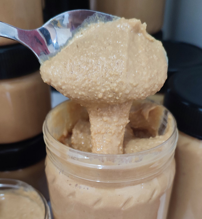 فقط و فقط بادام زمینی ایرانی اصل از آستانه اشرفیه هست که کره ش رو گرفتیم. طعم و عطر و مزه ش عالیه . طعمش زمین تا آسمون با کره بادامزمینی های دیگه فرق داره. چون نه نمک نه شکر نه شیرخشک هیچی بهش اضافه نمیکنیم.